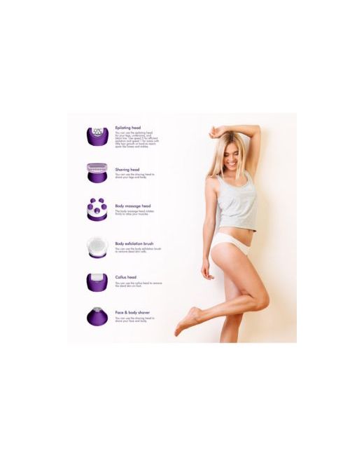 Experience the ultimate all-in-one solution for flawless hair removal with the 6-in-1 Smooth Glide Epilator. Engineered for versatility, this advanced device features six attachments to meet all your grooming needs, delivering salon-quality results from head to toe.Key Features:All-in-One Solution: Provides a comprehensive hair removal experience, maintaining smooth, hair-free skin effortlessly.Versatile Attachments: Includes six interchangeable attachments:Epilating Head: Efficiently removes hair from the root for long-lasting smoothness.Shaving Head: Offers a close shave, leaving your skin silky.Body Massage Head: Relaxes and soothes your skin after epilation.Body Exfoliation Brush: Gently exfoliates, removing dead cells and preventing ingrown hairs.Callus Head: Softens and smooths rough skin on your feet.Face and Body Shaver: Ideal for quick touch-ups and sensitive areas.
