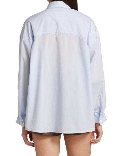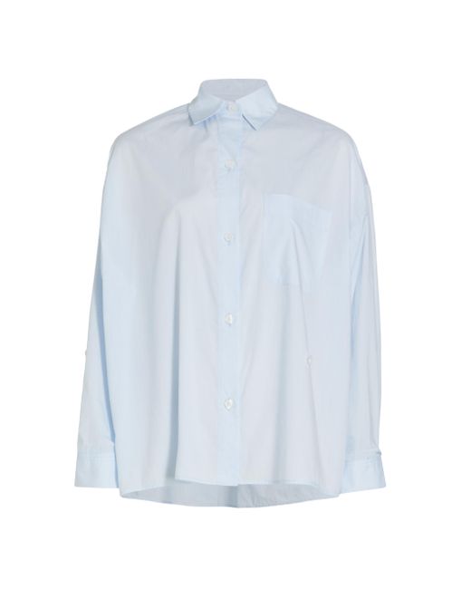 Lightweight cotton lends an airy feel to this button-up shirt, cut with a boxy silhouette. Point collar Long sleeves with button cuffs Button front Chest patch pocket Cotton Dry clean Made in Italy SIZE & FIT About 28" from shoulder to hem Model measurements: 5'10" tall Model is wearing US size Small ABOUT THE BRAND New York-based label TWP offers modern, effortless takes on go-to wardrobe staples. On a mission to democratize luxury, founder Trish Westcoat Pound, of Haute Hippie fame, focuses on high-quality details and subtle-yet-alluring silhouettes to create elevated, everyday pieces-all made in the U.S. with fabrics sourced from Italy. Contemporary Sportswear - Contemporary Lifestyle > Twp > Saks Fifth Avenue > Barneys. TWP. Color: Baby Blue. Size: XS.