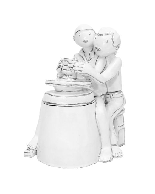 From the Cookie Jars Collection. The Ghost cookie jar from Hazy Mae is a ceramic hand-sculpted lidded jar based on the Unchained Melody scene from the movie Ghost. Featuring a bright glaze, metallic chrome details finish the piece. Ceramic clay Hand wash Made in USA SPECIFICATIONS 8" W x 15" H x 7" D. Home - Decorative Home > Hazy Mae > Saks Fifth Avenue > Barneys. Hazy Mae. Color: Bright White.