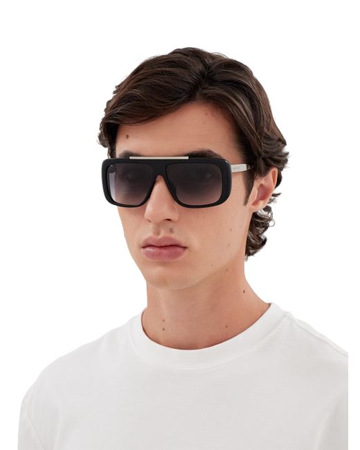 Made in Italy, these Alexander McQueen navigator sunglasses are crafted of recycled acetate and metal. Made with recycled acetate 100% UV protection Gradient lenses Recycled acetate/metal Made in Italy SIZE 60mm lens width 13mm bridge width 140mm temple length ABOUT THE BRAND Visionary designer Lee Alexander McQueen launched his brand in 1992, which quickly became synonymous with cutting-edge, avant-garde design. Creative Director Seán McGirr has continued the designer's legacy, bringing precision craftsmanship and a feminine vision to the label's signature edge. Soft Accessories - Sunglasses > Mcqueen > Saks Fifth Avenue > Barneys. McQueen. Color: Black Silver Black.