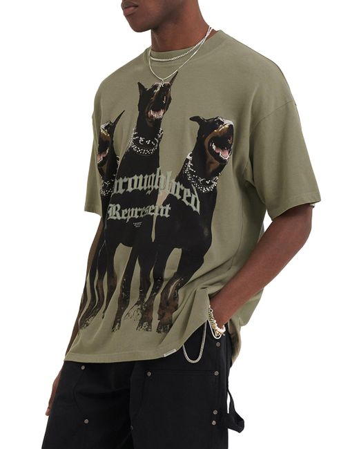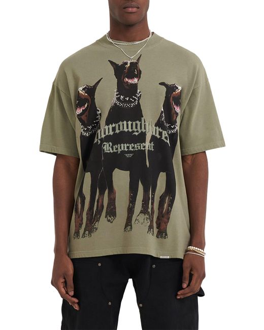 Crafted of cotton, the Thoroughbred logo T-shirt from Represent is printed with a Doberman motif. Crewneck Short sleeves Pulls over 100% cotton Machine wash Made in Portugal SIZE & FIT About 29.25" from shoulder to hem Model measurements: 6'2" tall, 40" chest, 31" waist Model is wearing a US size Medium. Mens Adv Contemporary - Advanced Contemp Collect > Represent > Saks Fifth Avenue > Barneys. Represent. Color: Khaki. Size: XS.