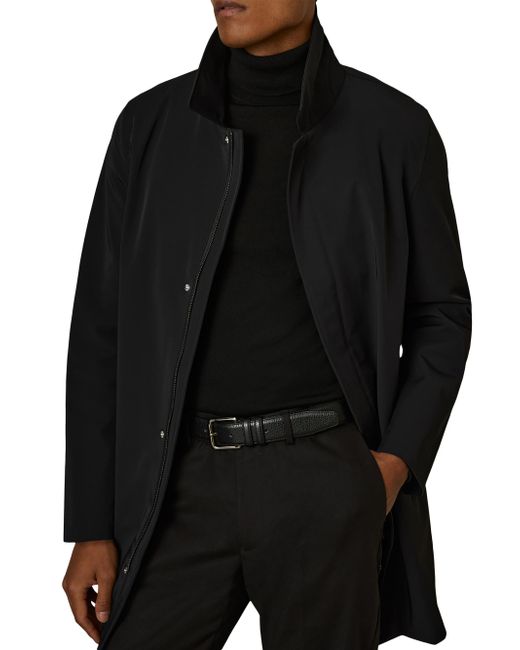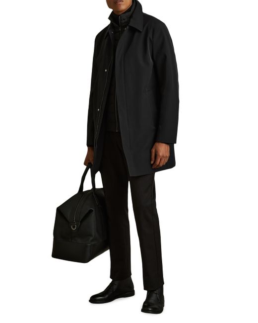 The Logan jacket from Reiss highlights a layered design featuring an interior padded full-zip vest with a stand collar. The stretch-nylon outer layer features a spread collar, side slant pockets, and a zip closure with a snap-storm placket. Stand collar, exterior spread collar Long sleeves Side slant pockets Front zip closure, snap storm placket Interior padded vest Main: 86% Nylon/ 14% Elastane Shell: 100% Polyester Back: 100% Polyester Dry clean Imported SIZE & FIT Model measurements: 6'2" tall, 40" chest, 31" waist Model is wearing a US size Medium. Mens Modern Coll & Outer - Modern Collections > Reiss > Saks Fifth Avenue > Barneys. Reiss. Color: Navy. Size: Large.
