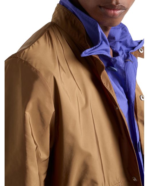 Regular fit Stand-up collar Straight sleeves Snap closure Flap pockets Cuff with strap and snap Regular shoulder Straight hem Unlined Enameled metal triangle logo 100% Recycled Polyamide Imported. Lsd Rtw - Prada Rtw > Prada > Saks Fifth Avenue > Barneys. Prada. Color: Brown. Size: 42.