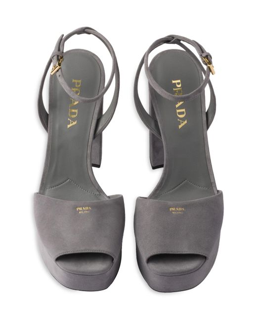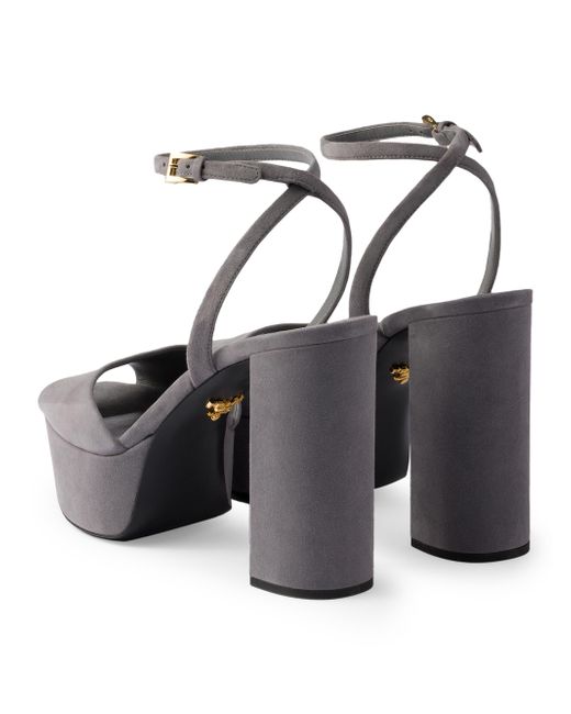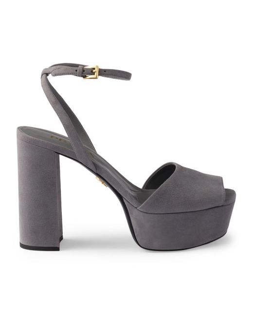 The iconic geometric shape of the triangle logo embellishes these suede sandals with sophisticated charm. The contemporary high-heeled platform silhouette is completed with refined ankle straps. Straps with logo-engraved buckles Enameled metal triangle logo Leather and rubber sole with metal lettering logo Suede-covered heel, height: 115mm / 4.5'' Suede-covered platform, height: 40mm / 1.5'' Imported. Lsd Rtw - Prada Rtw > Prada > Saks Fifth Avenue > Barneys. Prada. Color: Beige Khaki. Size: 6.