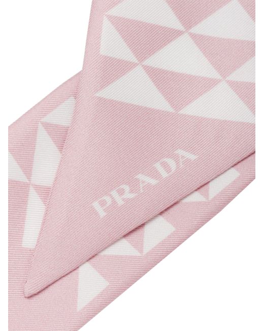 The triangle, Prada's iconic logo since 1913, is reimagined in always new ways and is found in the graphic pattern on this twill scarf. Triangle print Print logo W 6 cm / 2.3''x H 85 cm / 33.4'' Imported. Lsd Handbags - Prada Handbags Access > Prada > Saks Fifth Avenue > Barneys. Prada. Color: Pink.