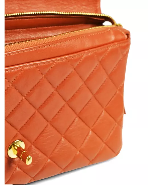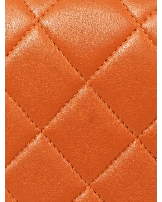 circa 1997 orange lambskin diamond quilting two leather and chain-link shoulder straps front flap closure signature interlocking CC turn-lock fastening top zip fastening main compartment slip pocket to the rear gold-tone hardware Serial Number: 4133032 This item comes with an original authenticity seal. This item comes with an original Chanel authenticity card. Condition: GOOD. This previously owned and used item is in good condition with minimal signs of use. This may include fading of material or plating and scratches.