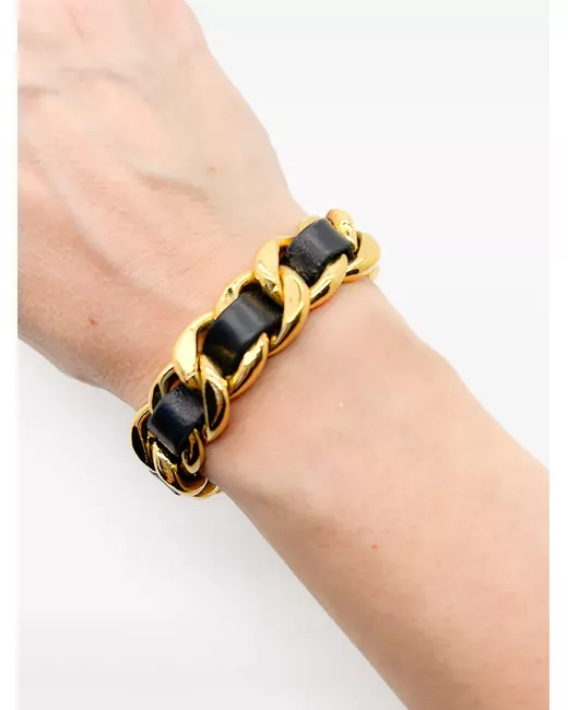 circa 1980s gold-tone gold plated polished finish leather leather and chain-link detailing T-bar fastening Condition: GOOD. This previously owned and used item is in good condition with minimal signs of use. This may include fading of material or plating and scratches.
