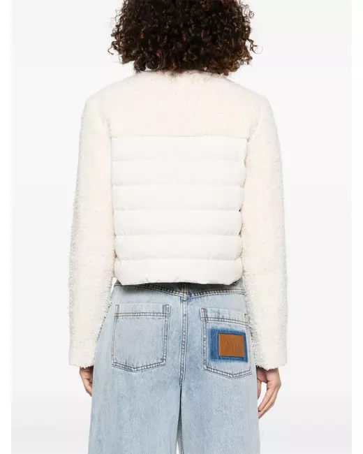 white concealed front zip fastening two front flap pockets quilted lining round neck