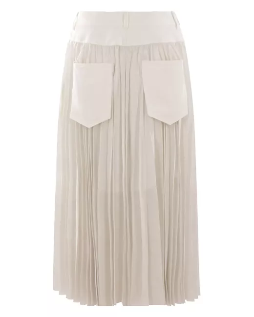 white fully pleated belt loops two side patch pockets A-line