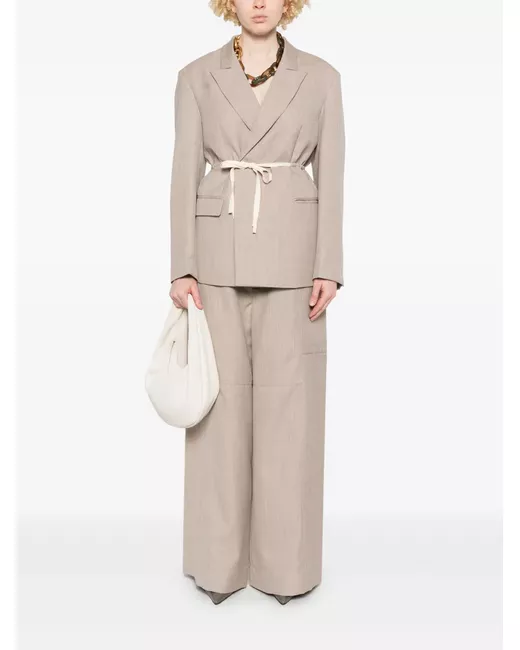 light brown concealed fly and button fastening elasticated drawstring waistband two side welt pockets two rear welt pockets