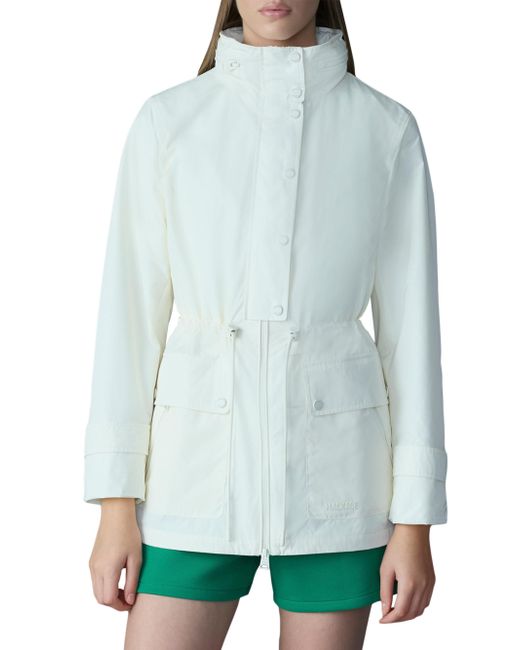 Mackage's Keryn medium-length jacket is crafted of recycled polyester. Featuring a relaxed silhouette with functional details, this jacket includes a stand collar with a packable hood and double-entry patch pockets, making it ideal for urban and outdoor wear. Made with recycled polyester Stand collar, packable hood Long sleeves Drawcord waistband Side double-entry snap-patch pockets Front zip closure 100% recycled polyester Lining: 100% recycled polyester Dry clean Imported SIZE & FIT True to size About 29.5" from shoulder to hem Model measurements: 5'10" tall Model is wearing a US size Small ABOUT THE BRAND Founded in Montreal in 1999, Mackage began as a comprehensive outerwear brand offering everything from fine leather jackets to tailored wool coats and down parkas. The label evolved to develop superior construction and comfort, creating flattering and elegant silhouettes. Mackage is committed to quality and performance with an eye toward aesthetic innovation in its women's, men's and kids' designs. Outerwear And Swimwear - Down > Mackage > Saks Fifth Avenue > Barneys. Mackage. Color: Cream. Size: XS.