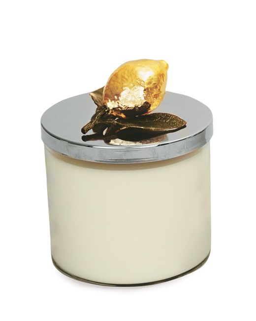 From the Lemonwood Collection. A vivid fragrance that celebrates the herbal and grassy heart of citrus with rich base notes of precious wood, sage, cardamom and clove. The glass jar is topped with a goldplated lemon on nickel-plated metal lid crafted by one of America's premier metalwork artists. Burn time: 60 hours 14.5 oz. Soy wax Imported TOP NOTES Lemon HEART NOTES Citrus BASE NOTES Wood Sage Cadamom Clove SPECIFICATIONS 3.75" W x 5.5"H. Home - Michael Aram > Michael Aram > Saks Fifth Avenue > Barneys. Michael Aram.