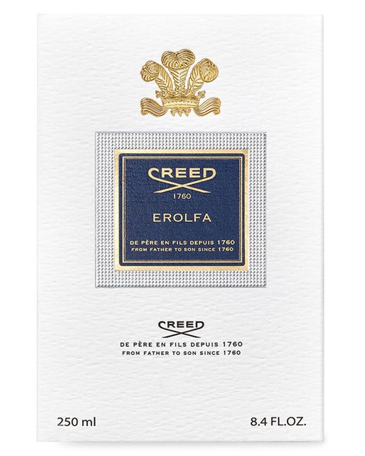WHAT IT IS This oceanic fragrance is an ode to Creed family memories of sailing the Mediterranean: invigorating seas, salty air, and citrus-scented breezes. Not only is Erolfa a blend of nautical-inspired notes, the unique name is a mix of each family member's name: Erwin, Olivier's only son and perfumer protégé (ER); Olivia, Olivier's daughter (OL); and Fabienne, Erwin and Olivia's mother (FA). The result is Erolfa, an uplifting scent destined to make memories all its own. 3.3 oz. Made in France. TOP NOTES Bergamot Lemon Orange Violet Cumin Basil Rosemary Melon HEART NOTES Cyclamen Jasmine Ginger Coriander Pepper BASE NOTES Cedarwood Sandalwood Moss Amber Musk ABOUT THE BRAND Established in 1760, the house of Creed began as a perfumer exclusively for King George III and his royal court. The English brand's fragrances became available to the public in 1970, and its iconic scents, including the best-selling Aventus, use the highest-quality ingredients sourced from around the globe. Fragrances - Creed > Creed > Saks Fifth Avenue > Barneys. Creed.