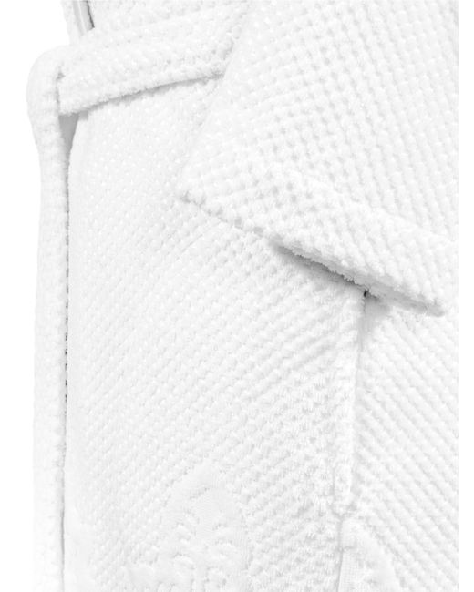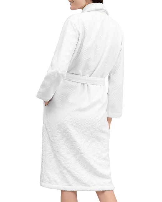 From the Michelle Collection. The Michelle robe from Togas is a classic robe with a shawl collar and a removable belt, made of high-quality combed cotton, known for its softness, durability, and wear resistance. It is adorned with jacquard ornaments in a classic style, creating an exquisite relief through the contrast of terry and smooth fabrics in the pattern. Shawl collar Long sleeves Side seam pockets Removable self-tie belt Open front 100% cotton Machine wash Imported SIZE & FIT Model measurements: 5'10" tall Model is wearing a US size Small. Home - Bed And Bath > Togas > Saks Fifth Avenue > Barneys. Togas. Color: White. Size: XS.