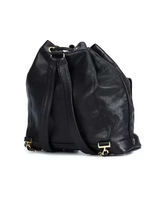 Black caviar leather drawstring backpack from Chanel Pre-Owned featuring a front flap pocket, a gold-tone twist lock fastening, a drawstring fastening, gold-tone hardware and chain and leather shoulder straps. Please note that pre-owned items are not new and therefore might have minor imperfections.