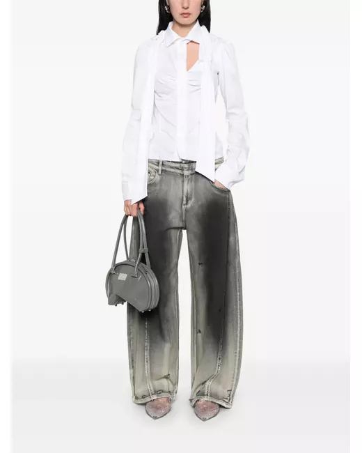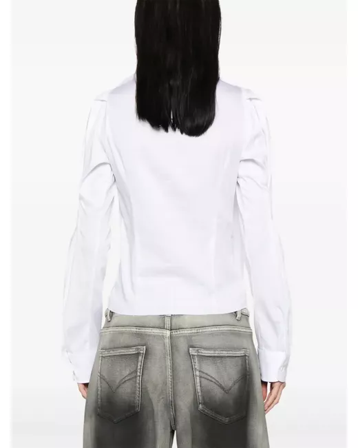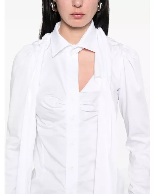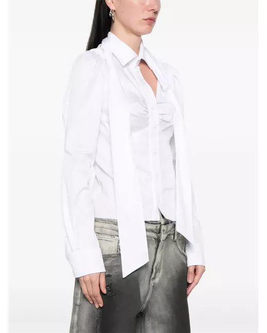 white front button fastening buttoned cuffs draped detailing cut-out detailing