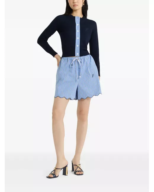Women's Blue striped drawstring shorts