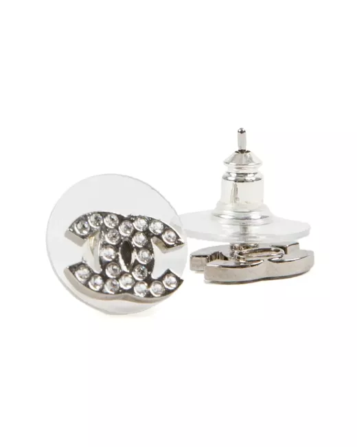 circa 2010s silver-tone signature interlocking CC logo stud design crystal embellishment post-back fastening for pierced ears These earrings come as a pair.