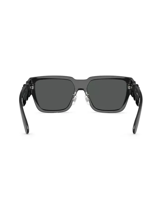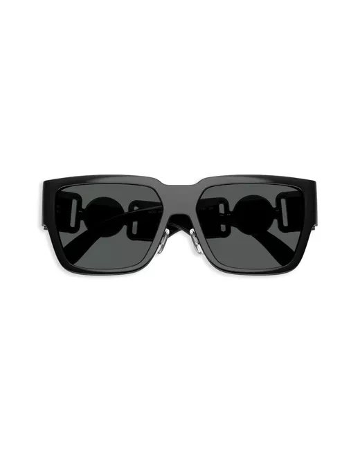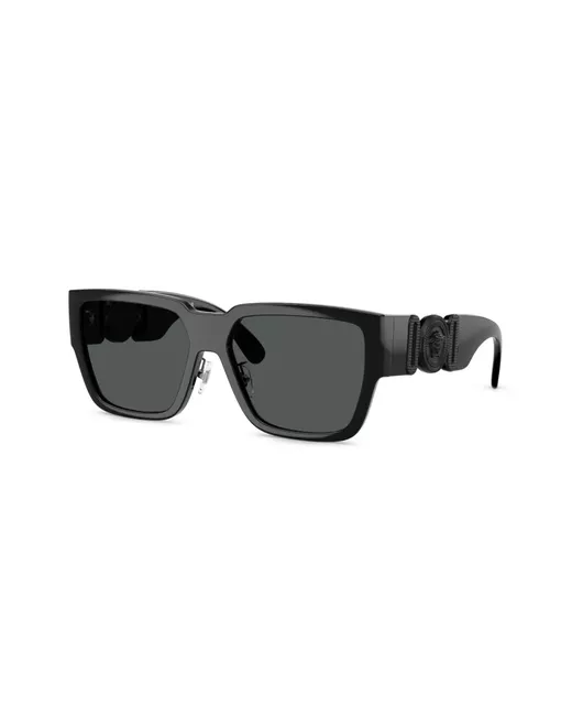 black high-shine finish rectangle frame tinted lenses oversize arms Medusa Head motif logo-embossed arm curved tips These glasses come with a protective case.