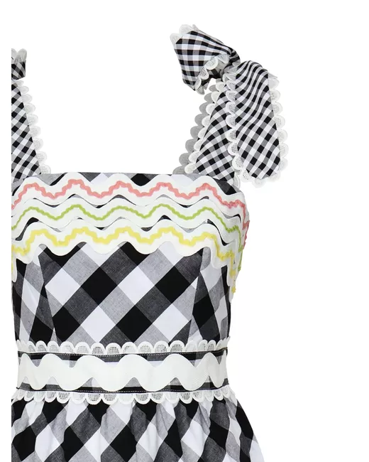 black rear zip fastening sleeveless plaid check print lace trim