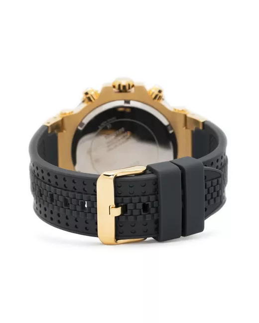 stainless steel quartz movement index dial black skeleton dial baton hands chronograph counters screw-down crown rubber strap pin-buckle fastening central hours, minutes and seconds water resistance up to 50m/5 ATM This item comes with a standard one-year warranty from the brand.