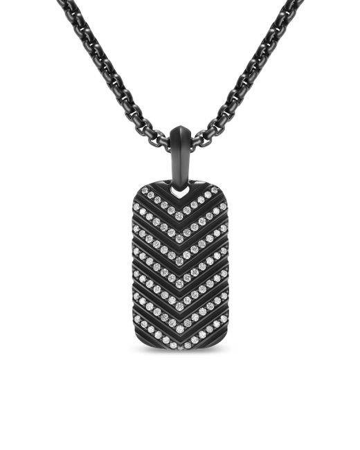 David Yurman skillfully reinterprets chevron - the ancient V-shaped pattern used in architecture and art - in this modern, sculptural collection. Viewed in relation to one another, each half of the motif is a mirror image of cable. Black titanium Pavé-set diamonds, 0.55 total carat weight Tag, 27 x 15.5mm Total length, 37.8mm Tag only; chain not included Imported ABOUT THE BRAND David, a sculptor, and his wife, Sybil, a painter, launched their innovative jewelry brand in 1980 in New York City. Since then, the American design house has pioneered cutting-edge collections - from its iconic combination of sterling silver and diamonds to signature pinky rings. Today, with their son Evan, the Yurmans continue to deliver timeless pieces inspired by nature, art, ancient symbols and Manhattan's stunning architecture. Lsd Jewelry - David Yurman > David Yurman > Saks Fifth Avenue > Barneys. David Yurman. Color: Diamond.