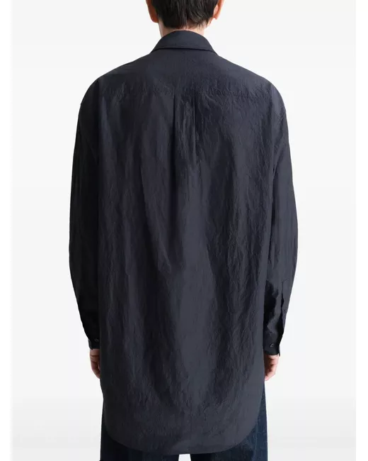 dark grey front button fastening classic collar crinkled finish two chest patch pockets