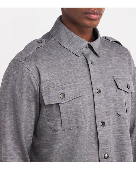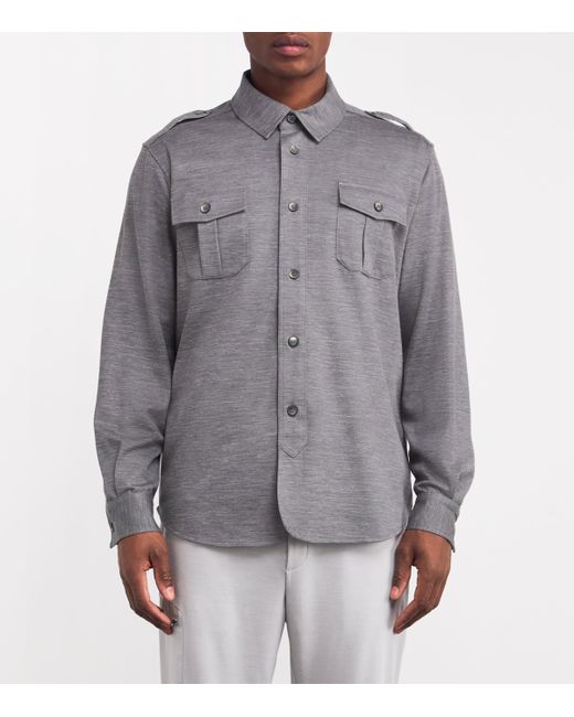 sease contrasts the soft nature of the wool and silk-blend jersey used to form this overshirt with decidedly utilitarian details, such as shoulder epaulettes, flap pockets and a pleated yoke. These elements come together to shine a spotlight on the label's fine Italian craftsmanship.