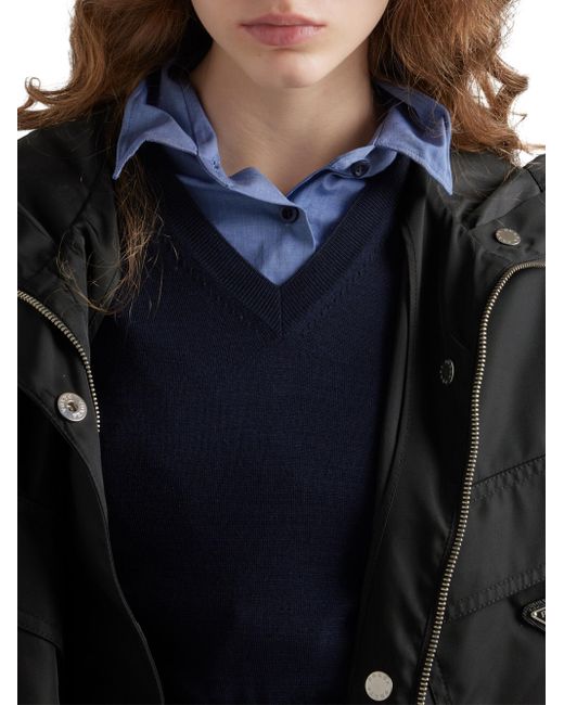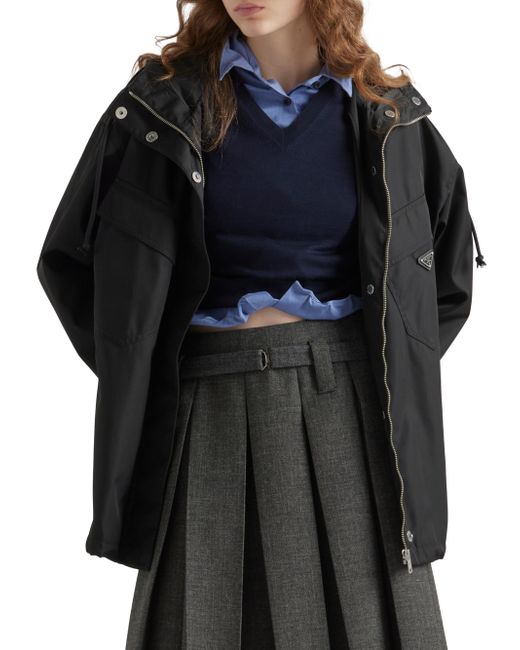 Unlined Hooded collar Long sleeves Elasticized cuff Zipper and button closure Welt pockets Enameled metal triangle logo cord drawstring on hood and hem Elasticized belt Imported 100% Recycled Polyamide - 30% Elastodiene 70% Polyester. Lsd Rtw - Prada Rtw > Prada > Saks Fifth Avenue > Barneys. Prada. Color: Black. Size: 2.