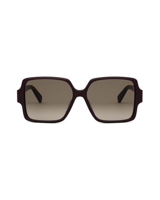 From the Triomphe Collection. Made in Italy, these sunglasses from CELINE are designed with an oversized square silhouette, gradient UV-protective lenses, and a metal signature in relief at the temples. 100% UV protection Gradient lenses Includes case and cleaning cloth Acetate Made in Italy SIZE 60mm lens width 15mm bridge width 135mm temple length Please note: Lens replacement is optional. Soft Accessories - Sunglasses > Celine > Saks Fifth Avenue > Barneys. CELINE. Color: Shiny Bordeaux Gradient Brown.