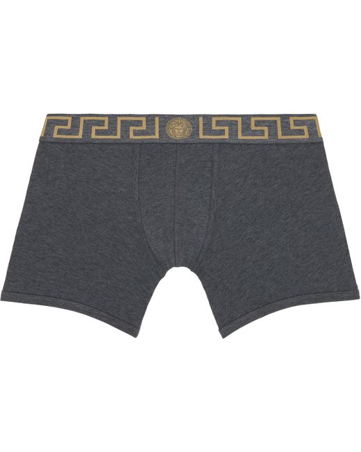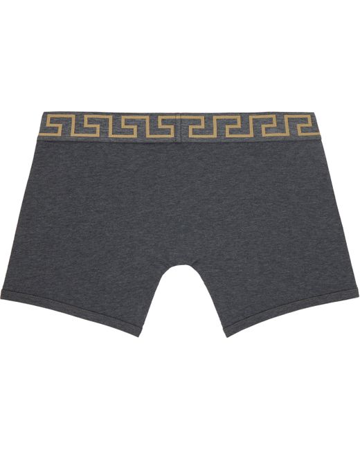 Men's Gray Two-Pack Black Greca Border Long Boxer Briefs