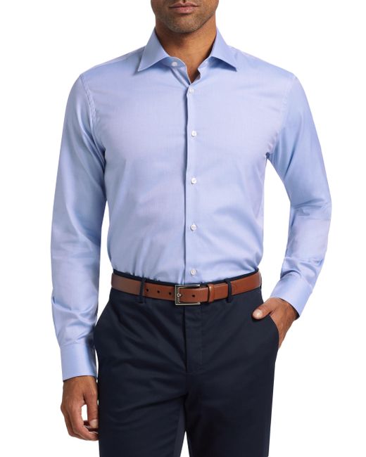 ONLY AT SAKS. Crafted of crisp cotton poplin, this classic dress shirt from Saks Fifth Avenue is designed with a spread collar, long sleeves, and a button-front closure. Spread collar Long sleeves, button cuffs Button-front closure 100% cotton Dry clean Imported SIZE & FIT Model measurements: 6'2" tall, 31" waist Model is wearing a US size Medium. Mens Pvt Brands - Sfamc Clothing > Saks Fifth Avenue > Saks Fifth Avenue > Barneys. Saks Fifth Avenue. Color: Light Blue. Size: 14.5.