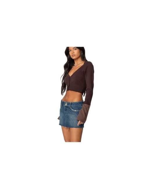 Cozy up in the cutest cardigan ever. Wear this contrast flared sleeve option with a mini skirt or your favorite pair of jeans and you'll be ready to take on your day.