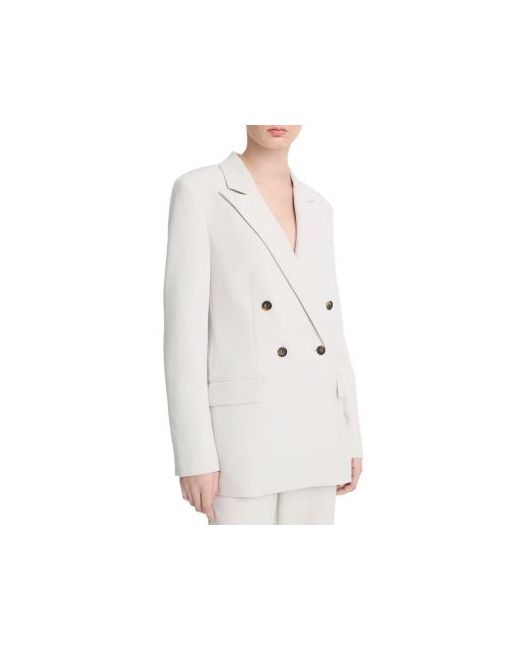 Vince Double Breasted Blazer.Color:Salt Glass.Size:0.Material:Shell: 63% polyester/30% viscose/7% elastane; lining: 100% polyester.