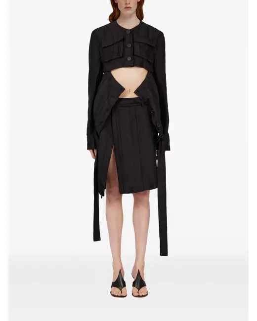 black front button fastening two chest flap pockets two side inset pockets