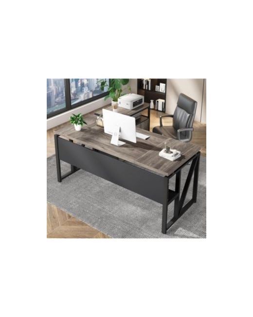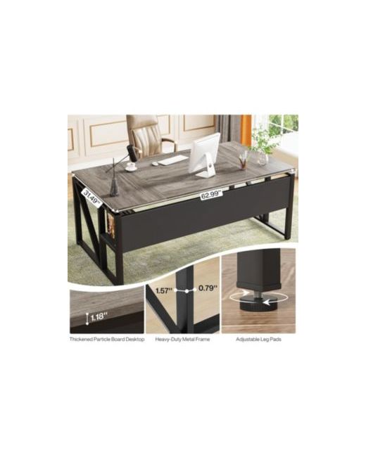 This computer desk with bottom storage shelf keeps books and essentials within reach. The spacious 63-inch surface is perfect for work, study, or gaming, offering both functionality and modern style.