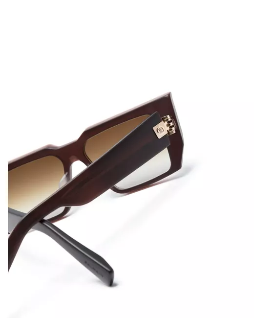 auburn brown gold-tone hardware acetate cat-eye frame gradient lenses oversize arms curved tips These glasses come with a protective case.
