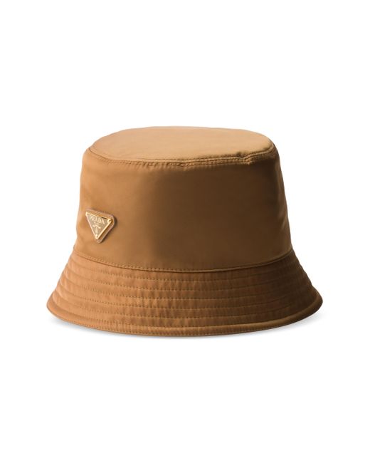 This bucket hat, an iconic accessory of Prada collections, is made of regenerated nylon yarn produced from recycled, purified plastic trash collected in the ocean, fishing nets and textile waste fibers. Enameled metal triangle logo Cotton lining 100% Recycled Polyamide Imported. Lsd Rtw - Prada Rtw > Prada > Saks Fifth Avenue > Barneys. Prada. Color: Brown. Size: XS.