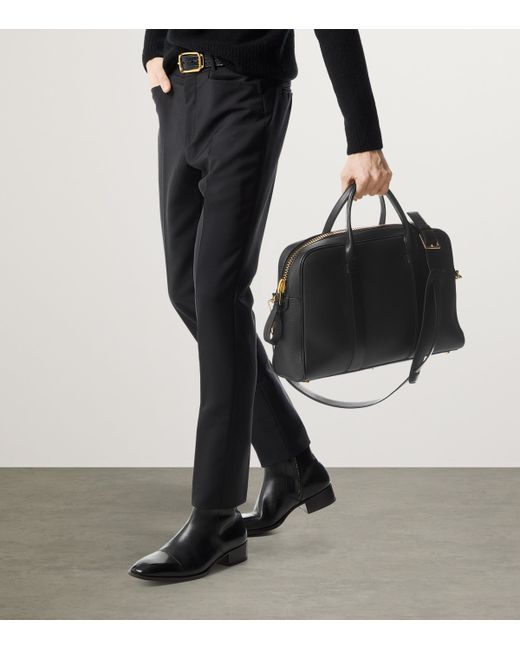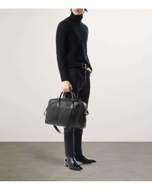 tom ford's Buckley briefcase offers a masterclass in masculine elegance, perfect for the modern gentleman who wants to imbue his business edits with a bold touch of extravagance. Without ever being over-the-top, the grained leather silhouette is packed with details that reflect the status of the opulent brand - most notable is the chunky gold-tone zip that the traverses it and delivers a sense of unrestrained extravagance. The structured form ensures that all your daily essentials are kept safe and organised, while the exterior aesthetic expresses your discerning taste.