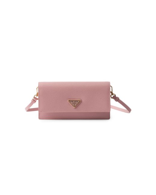 Saffiano leather, an emblematic material of Prada collections, stands out for its crosshatch pattern with waxed finish that gives each design versatile, elegant charm. This mini-bag has a sleek yet refined geometric shape, illuminated by the metal hardware and decorated with the iconic enameled metal triangle logo. Magnetic clasp Saffiano leather Enameled metal triangle logo detachable, adjustable leather shoulder strap Nappa leather interior with card slots Made in Italy 7'' W x 3.7'' H x 1.1''L. Lsd Handbags - Prada Handbags Access > Prada > Saks Fifth Avenue > Barneys. Prada. Color: Pink.