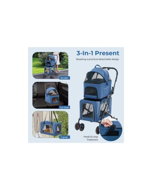 This 3-in-1 pet stroller is the ultimate solution for pet owners, serving as a stroller, carrier, and car seat. Designed for comfort and safety, it features two spacious, ventilated carriers, smooth-rolling wheels with rear locks, and a durable metal frame. Its foldable design ensures portability and easy storage, perfect for travel or daily use.