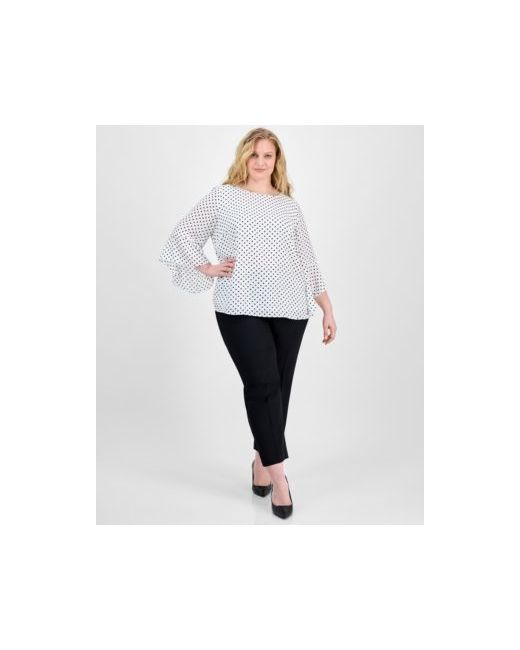Women's White Plus Polka-Dot Ruffle-Sleeve Blouse black