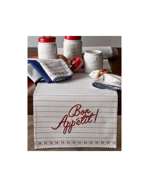 Our Bon Appetit Table runner is fused and lined for stability and durability. Embellished with embroidery and decorative stitching, the classic stripe will bring a layer of texture and design to your tabletop.