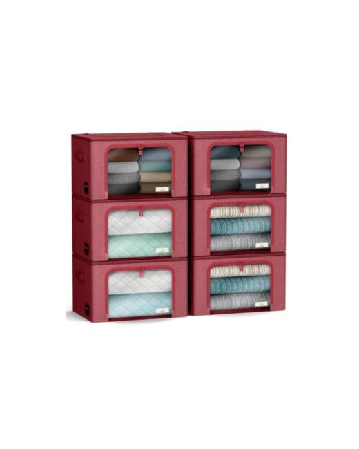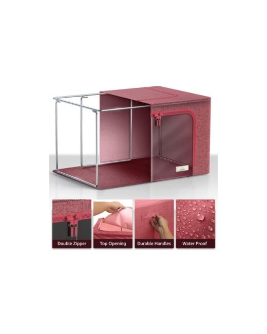 Women's Pink Medium Foldable Storage Box Metal Frame Oxford Fabric Large Window Handles Organization for Bedroom Linens Clothes