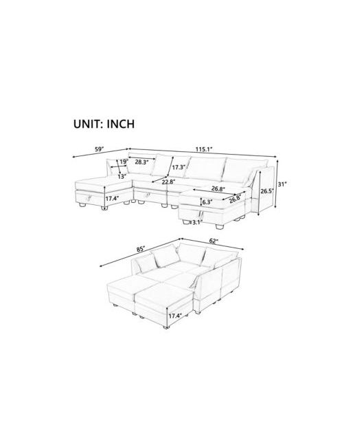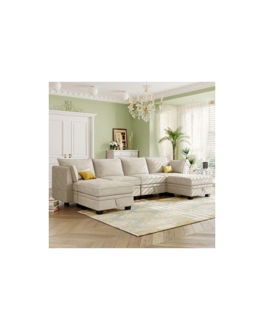 Beige Modern Large U-Shape Modular Sectional Sofa Convertible Bed with Reversible Chaise for Living Room Storage Seat