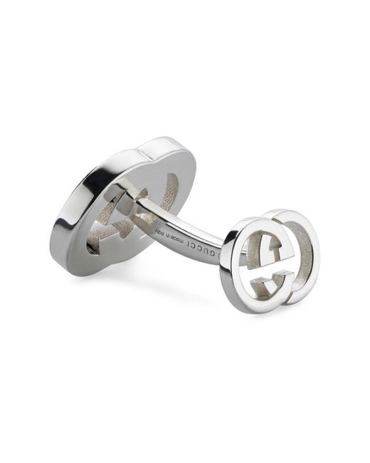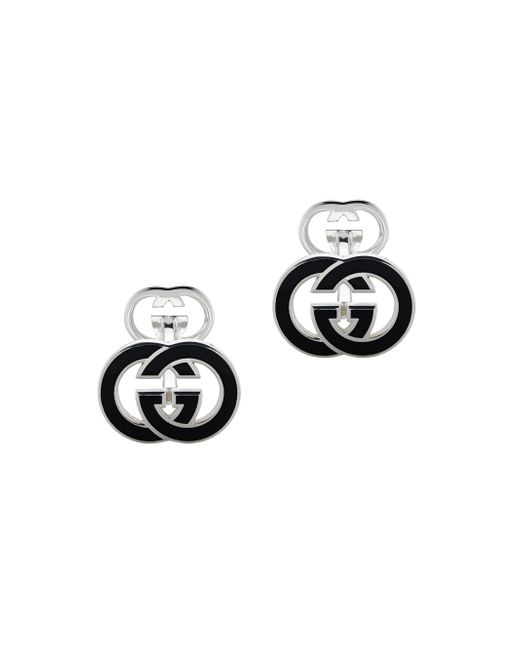 From the Gucci Interlocking G Collection. Crafted of sterling silver, these Gucci cufflinks sport a contemporary take on the Interlocking G motif. Sterling silver Spot clean Made in Italy ABOUT THE BRAND First launched in 1921, the Italian luxury fashion house quickly became known for its fine leather craftsmanship and accessories. Today, the visionary brand continues to redefine fashion trends, while celebrating creativity and innovation. Gucci's contemporary designs include shoes, clothing and accessories-often boasting the distinctive Horsebit motif. Men Accessories - Jewelry > Gucci > Saks Fifth Avenue > Barneys. Gucci. Color: Silver Black Enamel.