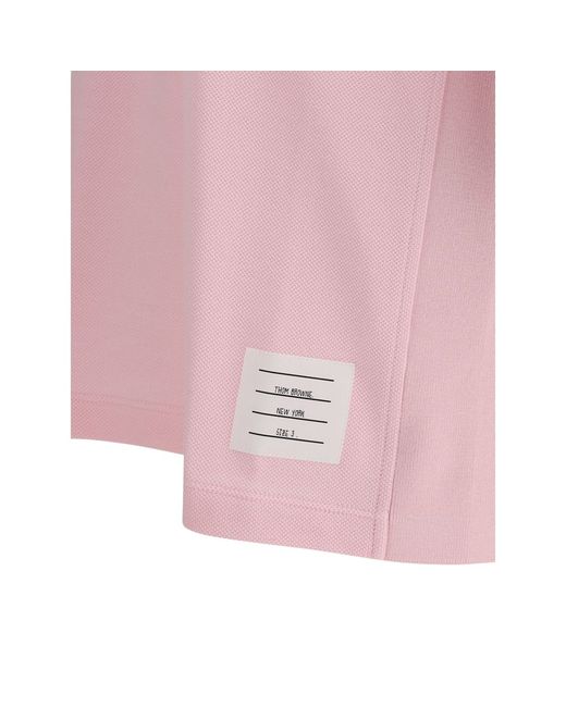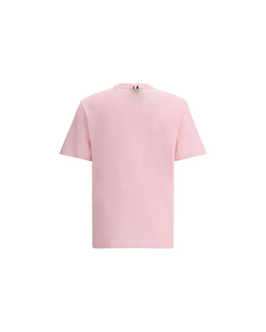 Cotton T-Shirt by Thom Browne, ribbed crew neck, iconic banding applied to side, brand signature patch applied to front, tricolor brand label embroidered on back.