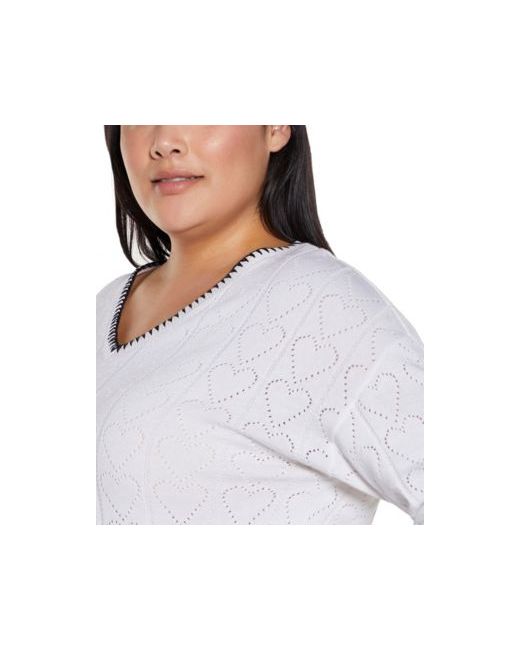 Knitted to feature a delicate heart pointelle design and finished with contrast blanket stitch accents, this long-sleeved, drop-shoulder sweater is perfect for any season.