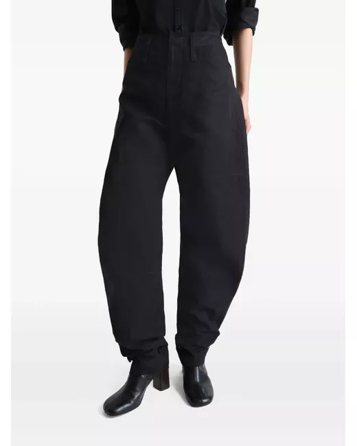 black concealed front fastening belt loops two side slash pockets two rear welt pockets