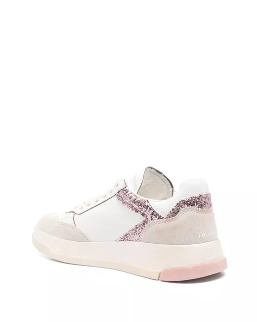 white front lace-up fastening contrasting rubber sole perforated toebox glitter detailing